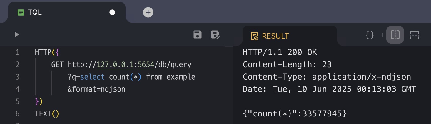 POST | /db/tql | 요청 본문에 포함된 TQL 스크립트를 실행합니다. |