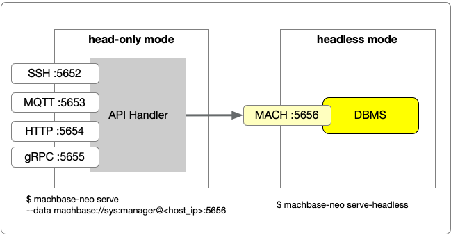 이 실행 모드는 별도로 구동되는 “헤드 온리” 프로세스와 함께 동작하도록 설계되어, API 서비스와 DBMS 엔진을 분리할 수 있습니다.