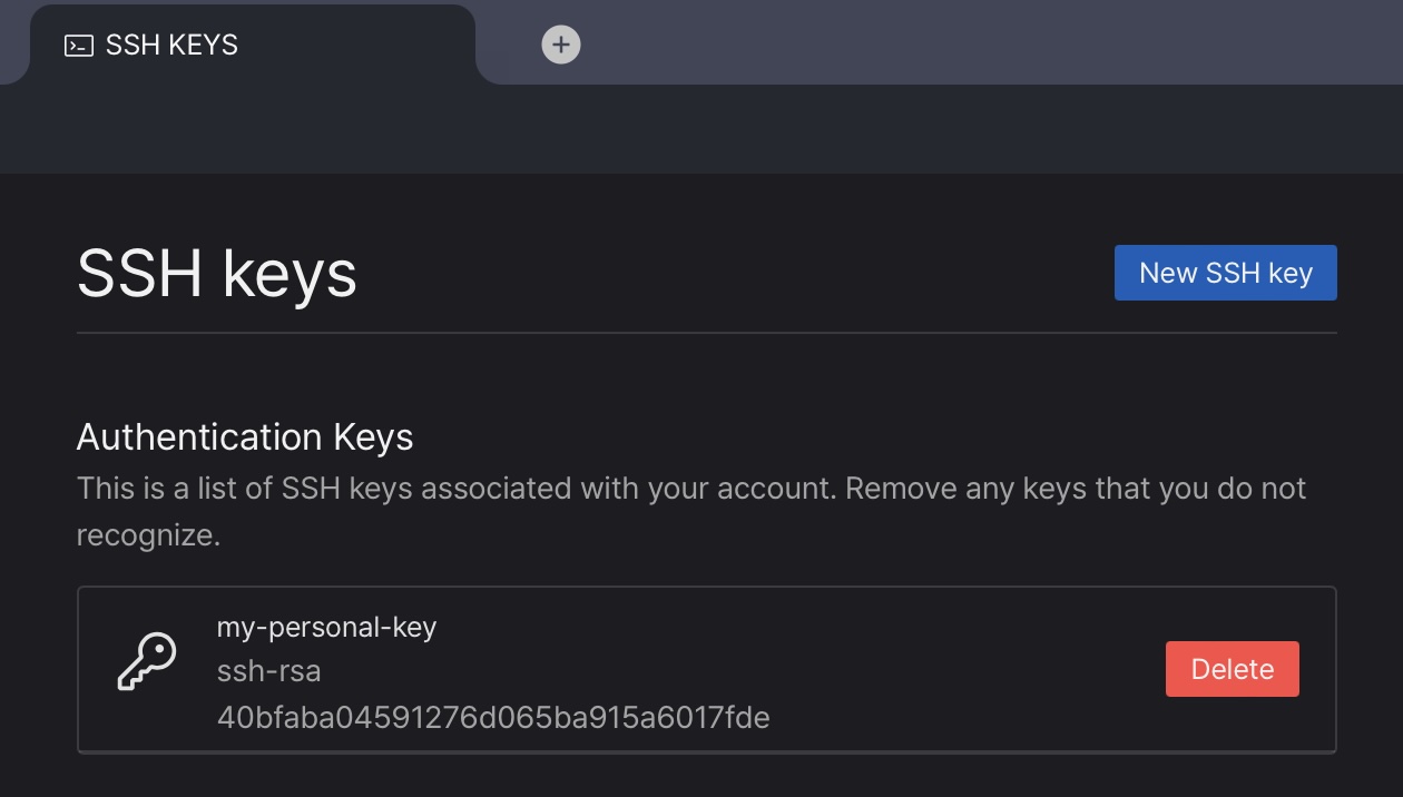 - 왼쪽 하단 메뉴에서 “SSH Keys"를 선택합니다. Since v8.0.20