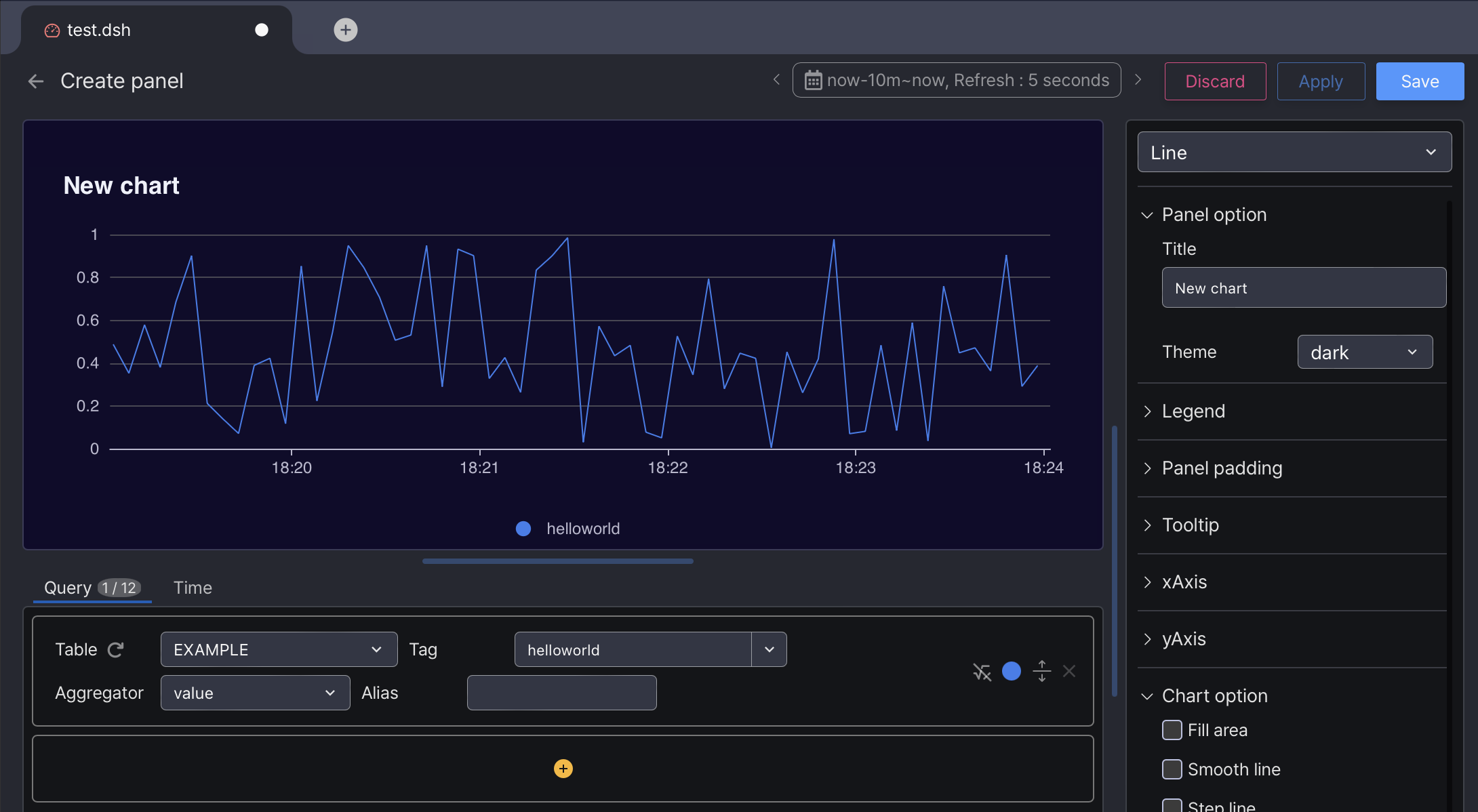 TQL 에디터를 열어 아래 코드를 입력하고 helloworld.tql