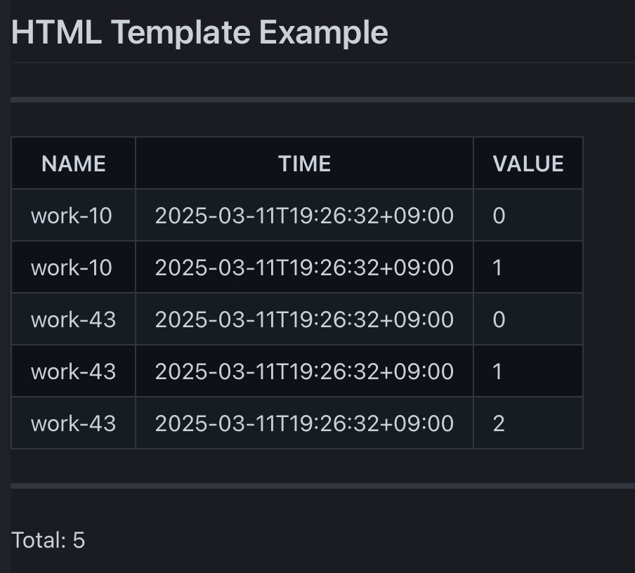 템플릿 내부에서는 현재 레코드의 필드 값과 행 번호에 접근할 수 있는 값 객체를 사용할 수 있습니다.