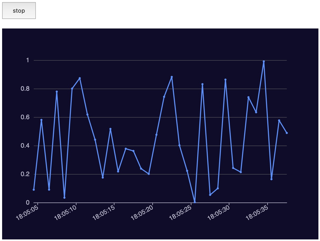이 예시는 초마다 랜덤 데이터를 생성하고 차트를 자동으로 갱신합니다.